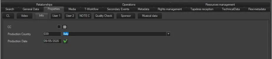 • Production Country: Select from drop down list the country on which the asset has been produced.