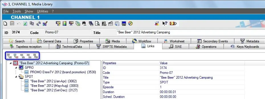Etere allows managing assets under a hierarchical assets structure based on Parent-Child relationships, allowing furthermore to handle alternative versions of a same asset. All relationships between assets are bidirectional, so once added from an asset form, they will be automatically added to the linked asset form.