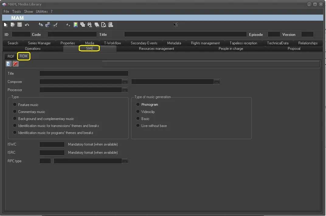 The term ROM stands by "Record Opera Musicale", it regards musical assets used in the schedule as foreground events, commented events, background events or jingles.