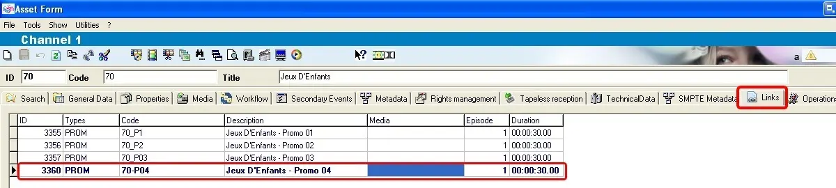 The recently created Trailer will be associated as a 'child' to the asset under the 'Links' tab, from which it will be accessible by making double-click on it: