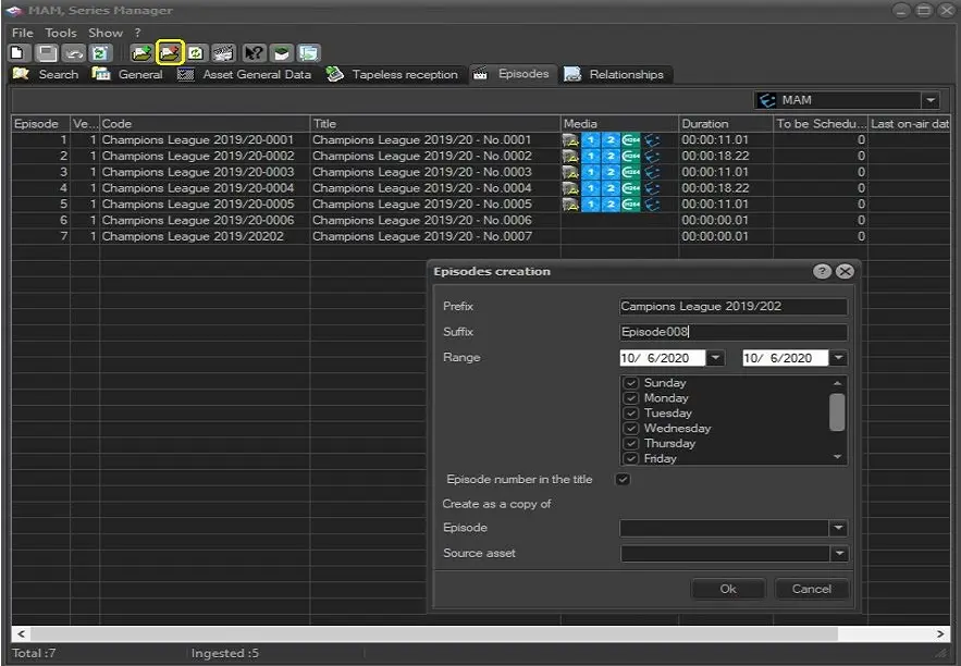 ➢Custom [Prefix][YYYMMDD][Suffix] : This creation interface allows to generate episodes with a chronological criteria based on the following parameters: