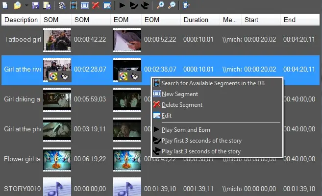 The Segment list section allows users to select and configure all segments intended to be used into the final video, it counts with a toolbar which allows an easy management of segments, the options present on it are: