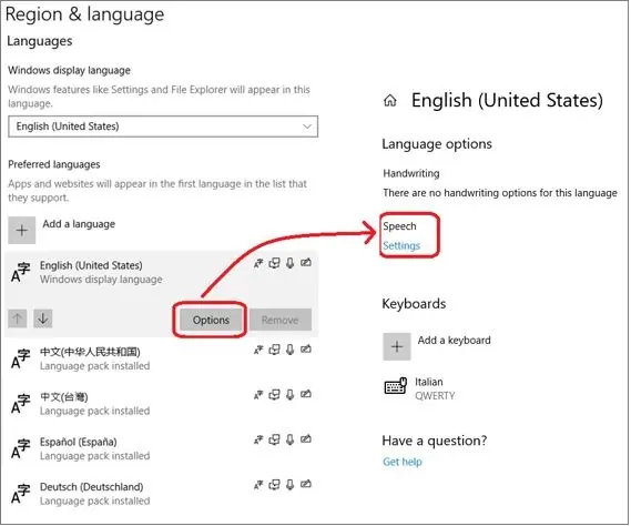 You must download the Microsoft Speech Recognition Engine from a recognized website and install the engine in the station. Upon installed, use the “Region and Language” in the station Control Panel to set the Language option.