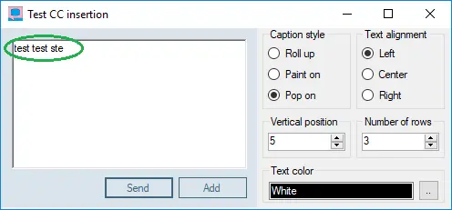 Upon defined, type the closed captions text into the blank spot and click <Send> to display the closed captions in selected standards.