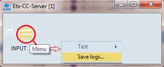 In ETX Closed Captions Server, you can extract log files for distributions by simply click on the Menu icon and activate the Save Logs feature.