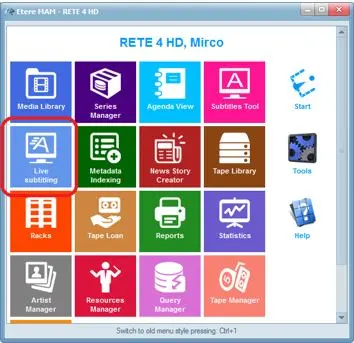 The Live Subtitling application has been embedded into MAM module main menu when MAM is launched. Double click on icon “Live Subtitling” to start the application.