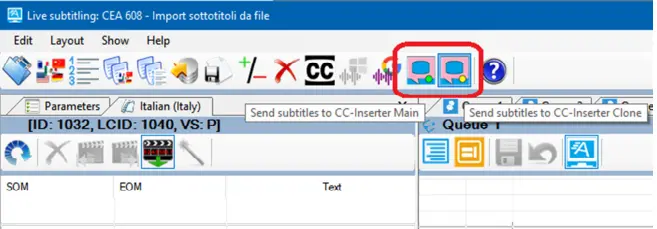In Live Subtitling, two icons has been deployed for selecting Main or Clone Closed Captions server when sending subtitles.