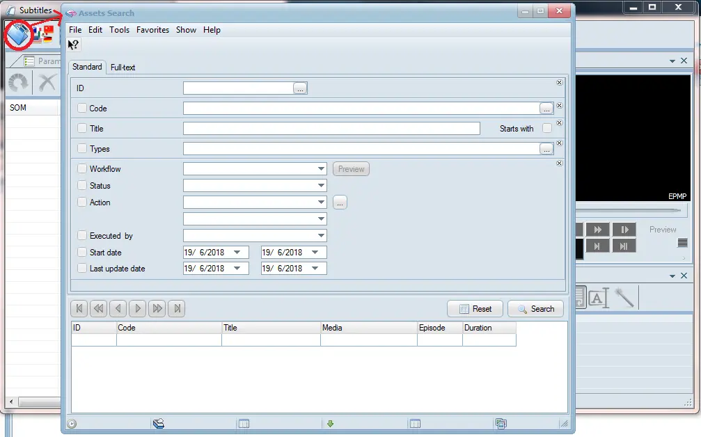 First, launch Subtitles Tools from MAM module and use the Assets Search function to search for video file that containing the subtitles file.