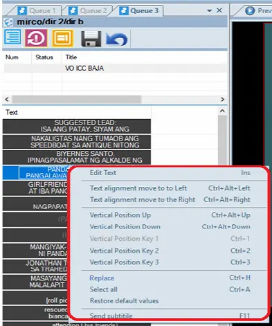 Function description : Select this function to replace the subtitles text in the selected subtitles line.