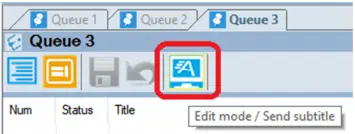 When multiple users are accessing the Live Subtitling module, it is crucial for all users working from their respective workstation to aware of the communication status to Closed Captions server while editing or transmitting subtitles. An icon “Edit Mode / Send Subtitles” is deployed on the toolbar to indicate its active / passive communication status to the Closed Captions server.