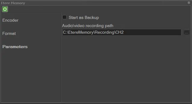 For Parameters, select the recording path for audio / video to close the configuration wizard.