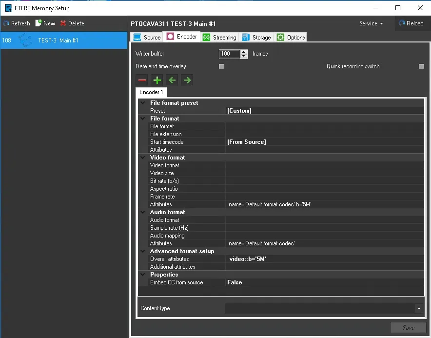 Writer Buffer: gives the possibility to set a buffer for the encoder. For default is set as 100 frames.