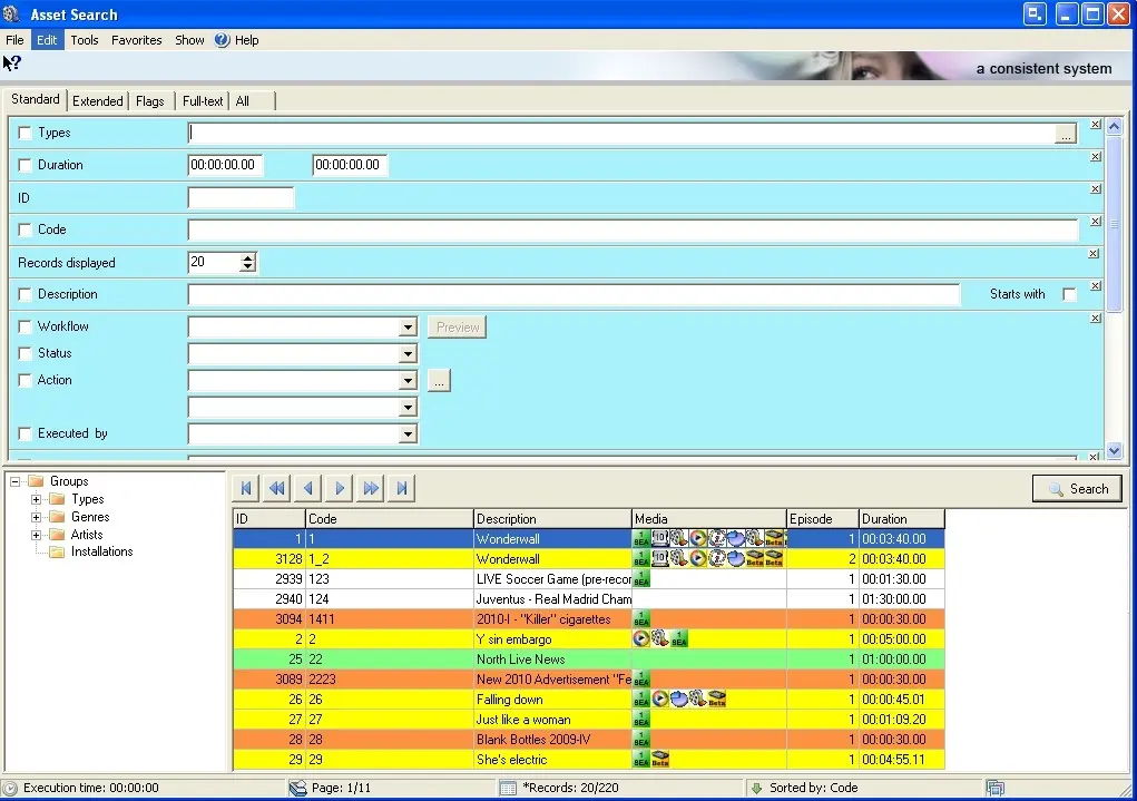 Using this function you will be able to search any asset form and with a double click insert it in the Rundown. In case the 'restore archived files' option is enabled in the ENPS Parameters section, at this time the request to restore is sent.