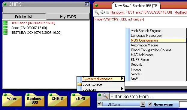 1. Start the ENPS client, select the ENPS logic unit, and choose "System Maintenance > MOS Configuration":