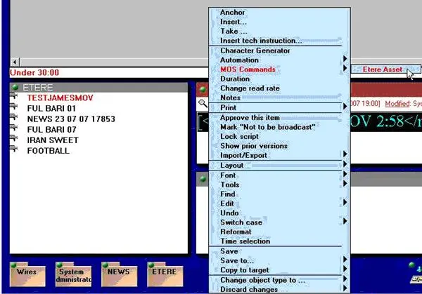 At the end of the configuration, it's possible to use the ENPS client for creating objects in Etere's database. These are the operations to do: