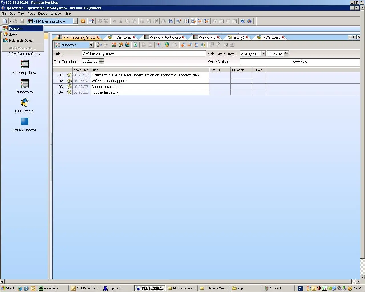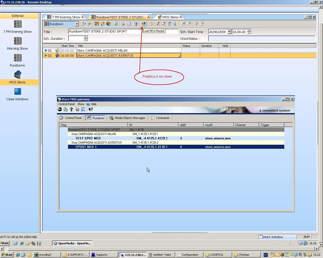 7. Once the rundown is completed, it can be published to Etere MOS Gateway by activating the 'Load MO Playlist' option