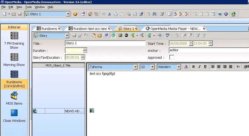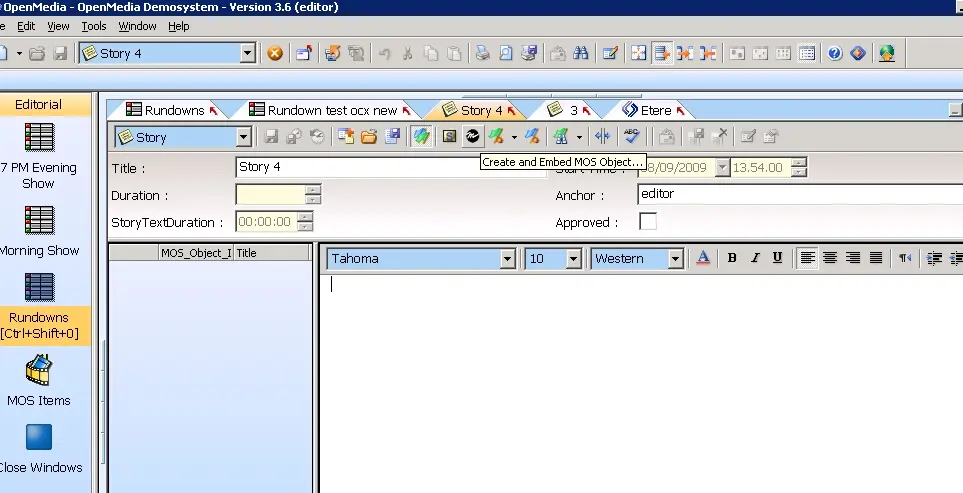 1. From the story toolbar, click on the 'MOS' icon, and the OCX will open in creator-mode