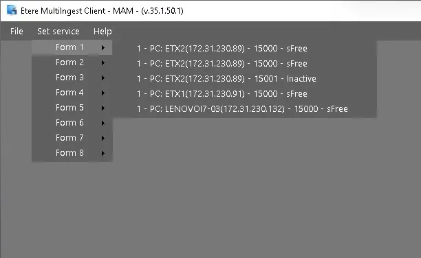 Each service can be used for one recording at a time, so, if selected for more than one form (on different workstations) or for scheduled ingest, once launched for a recording on one of those clients, the service will be shown in running status and the recording will be prevented.