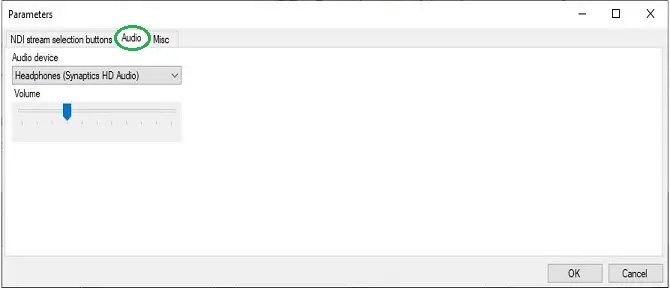 Next, select the audio output device from the “Audio” tab and set the audio volume to be monitored.