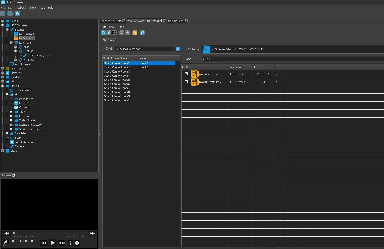 In Etere Nunzio is possible to manage multiple Studios within the same station, and assign to each studio a list of MOS Devices.