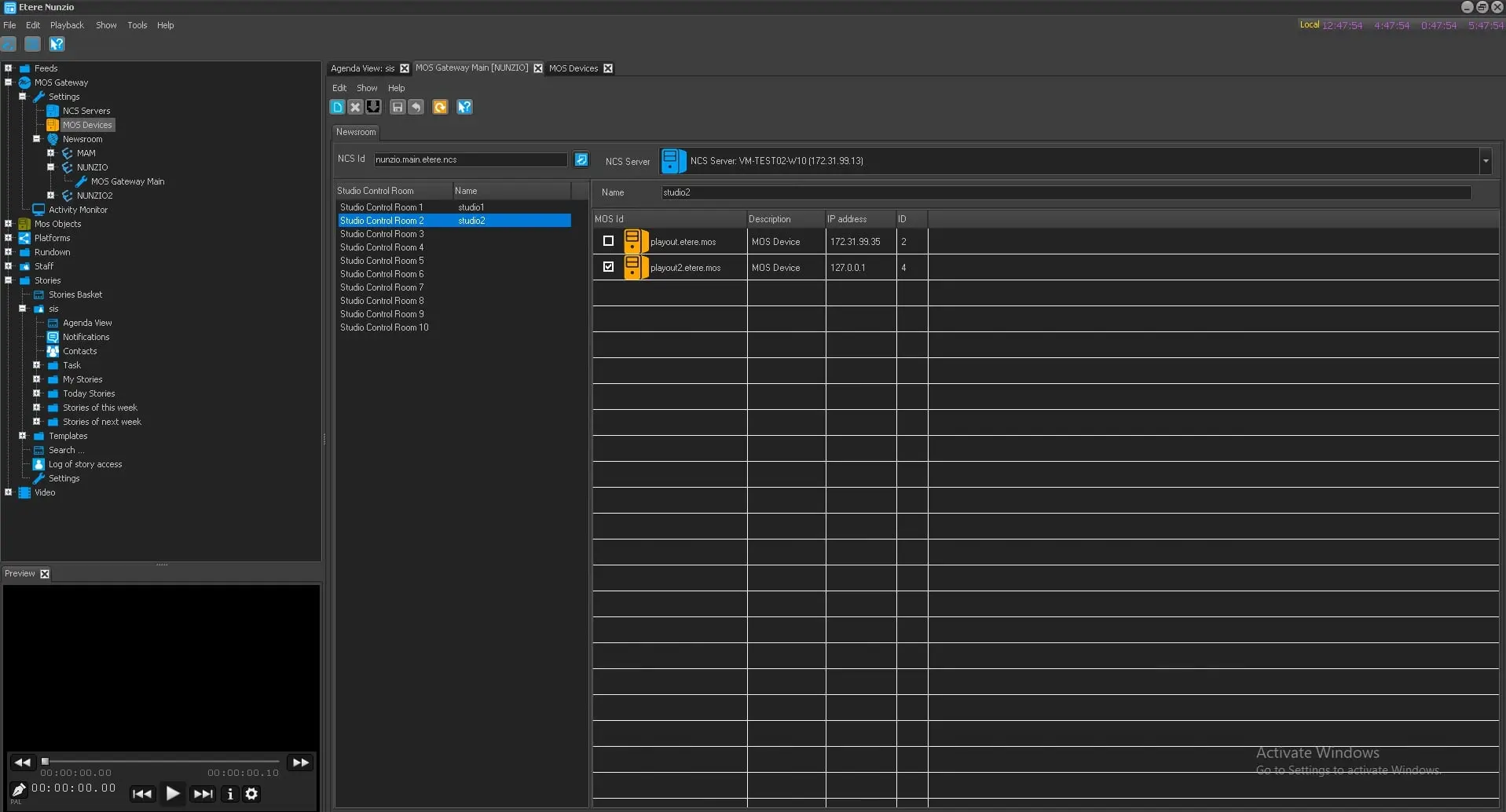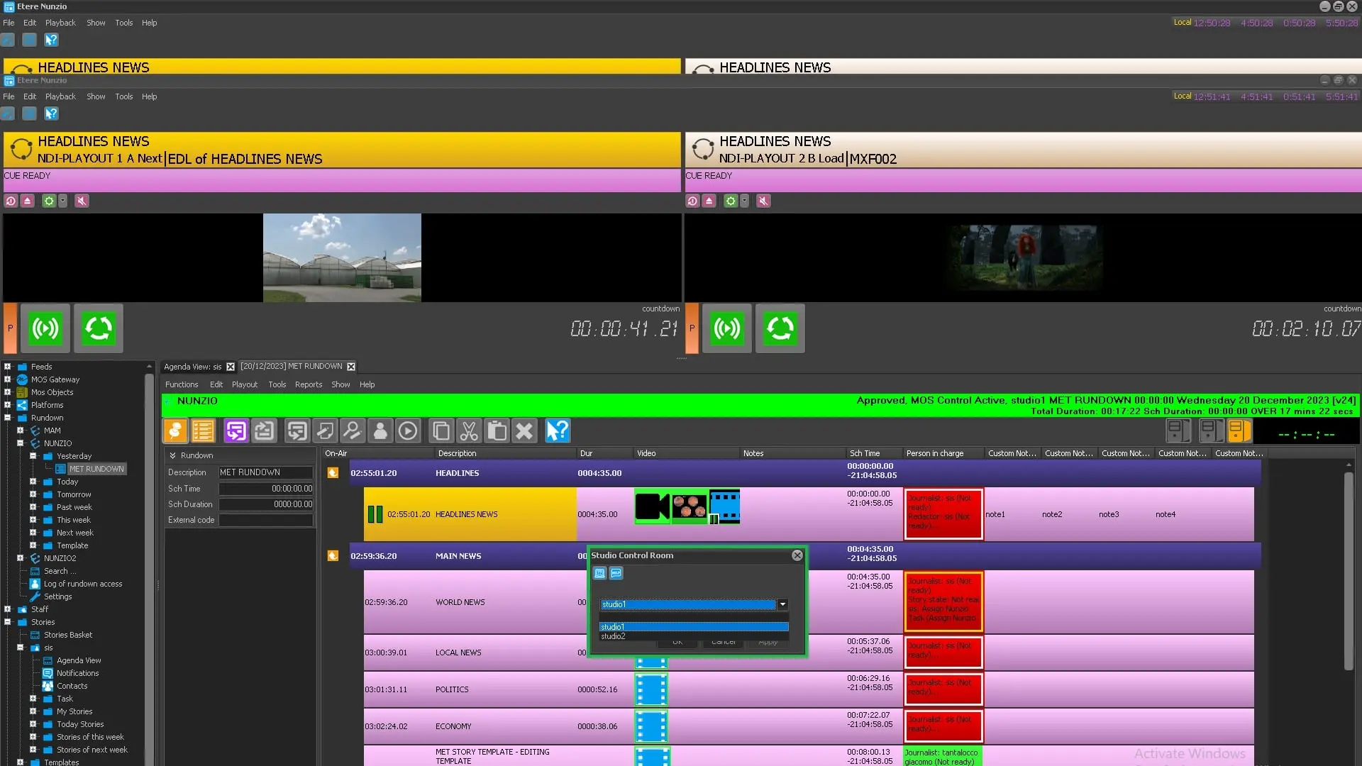 MOS configuration has been done. In order to air any specific studio, we must select it in the Nunzio Playout before MOS activating the Nunzio Rundown.