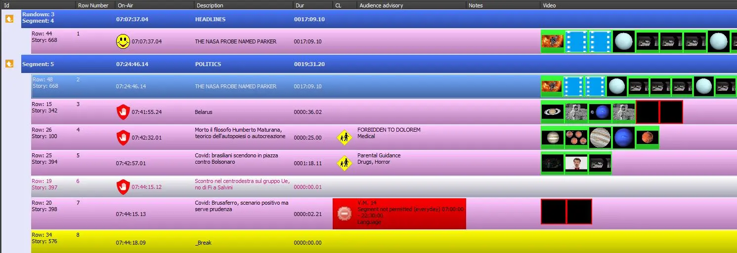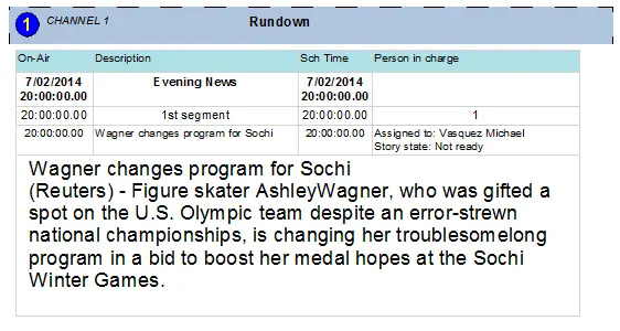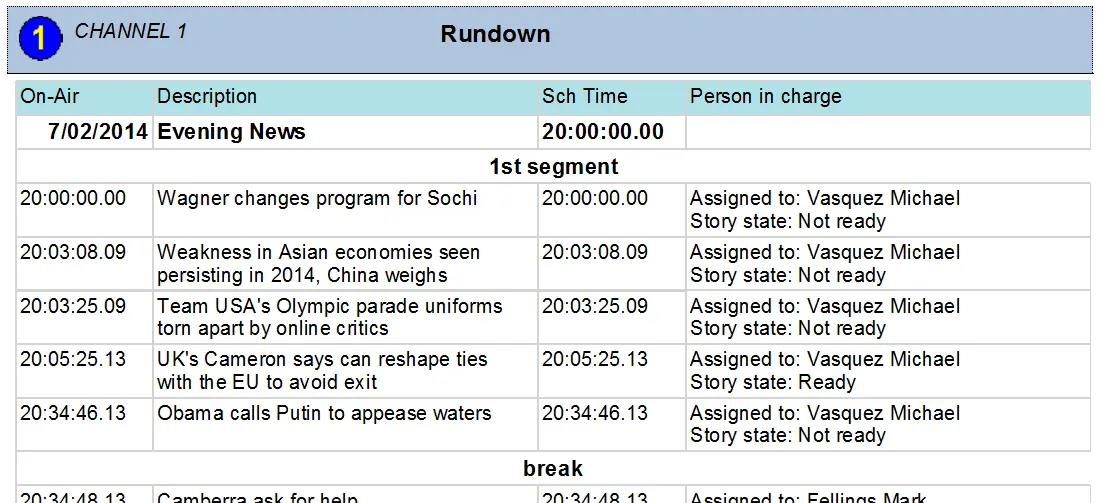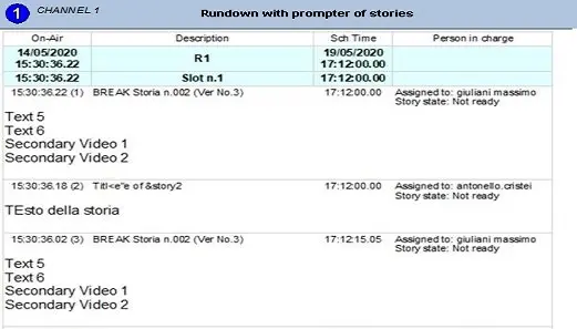 Rundown with prompter of stories: Generate a Rundown report containing all the stories text sent to the prompter. Rundown with prompter of stories