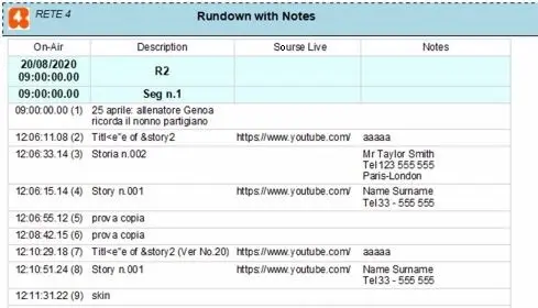 Rundown with Notes: Generate a report capturing the information in Notes column in the Rundown. Rundown with Notes
