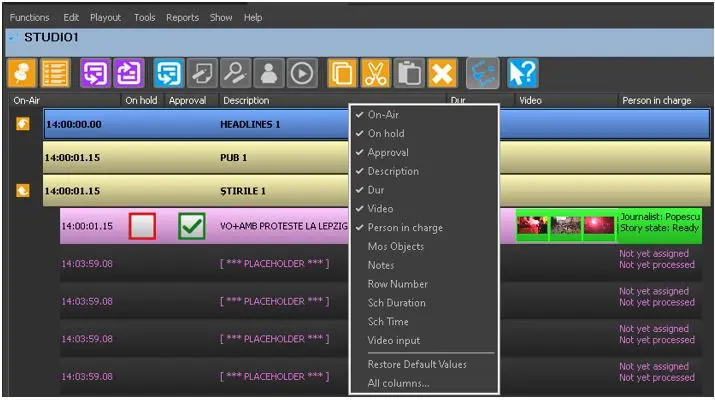 Within a Nunzio Rundown is possible to customize the columns just by right-click on the Rundown bar in order to add or remove any given column.