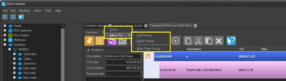 When more tabs are opened in Nunzio, by right-click on any tab you can close the tab or move the tabs to a new group or new window.