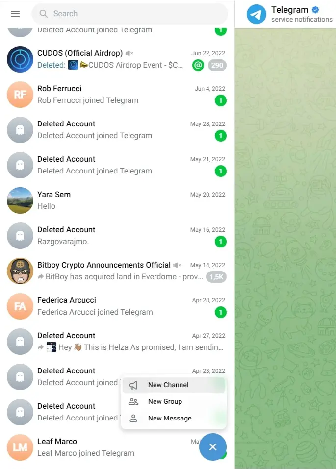 Creating a Telegram Channel is a pretty straight forward procedure. Just open Telegram press the pen icon and select New Channel. Take note of the Chat ID, it will be necessary later for the platform configuration.