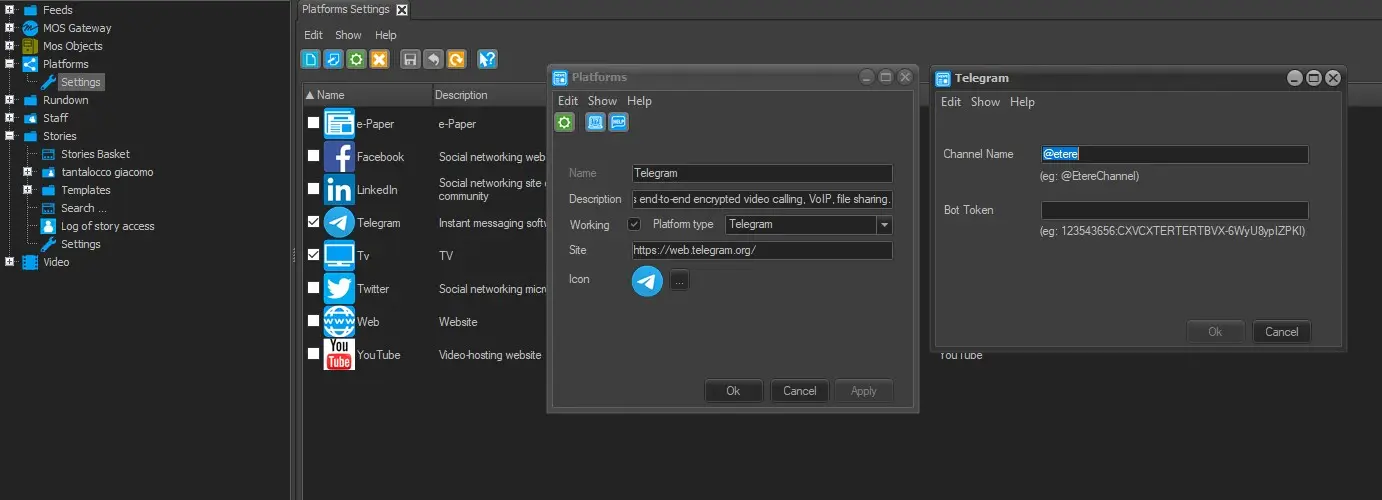 Telegram Bot will interact with the Telegram Channel and the Etere nunzio Content in order to allow automatic publish of the stories. In order to create a Telegram Bot, follow some precise steps: