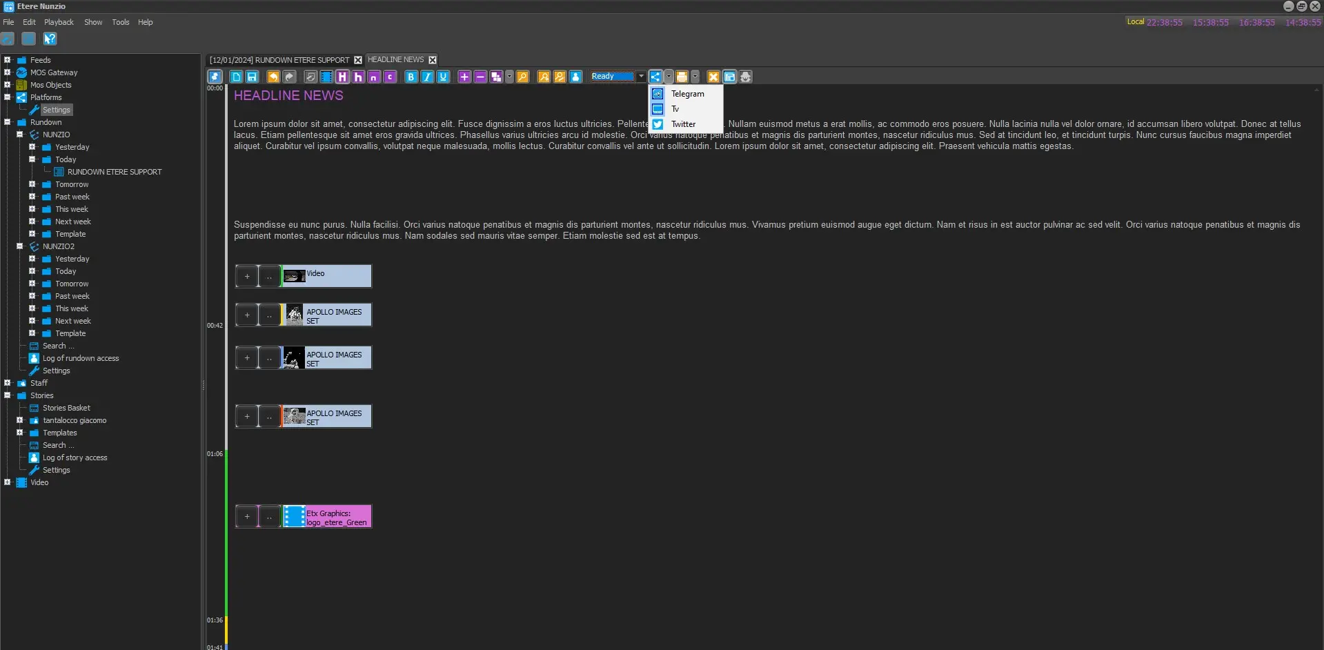 This means that along with the main Platform which is usually the TV one, is possible to share Nunzio Stories simultaneously, enhancing the spread of the Newsroom content and media view across multiple platforms.