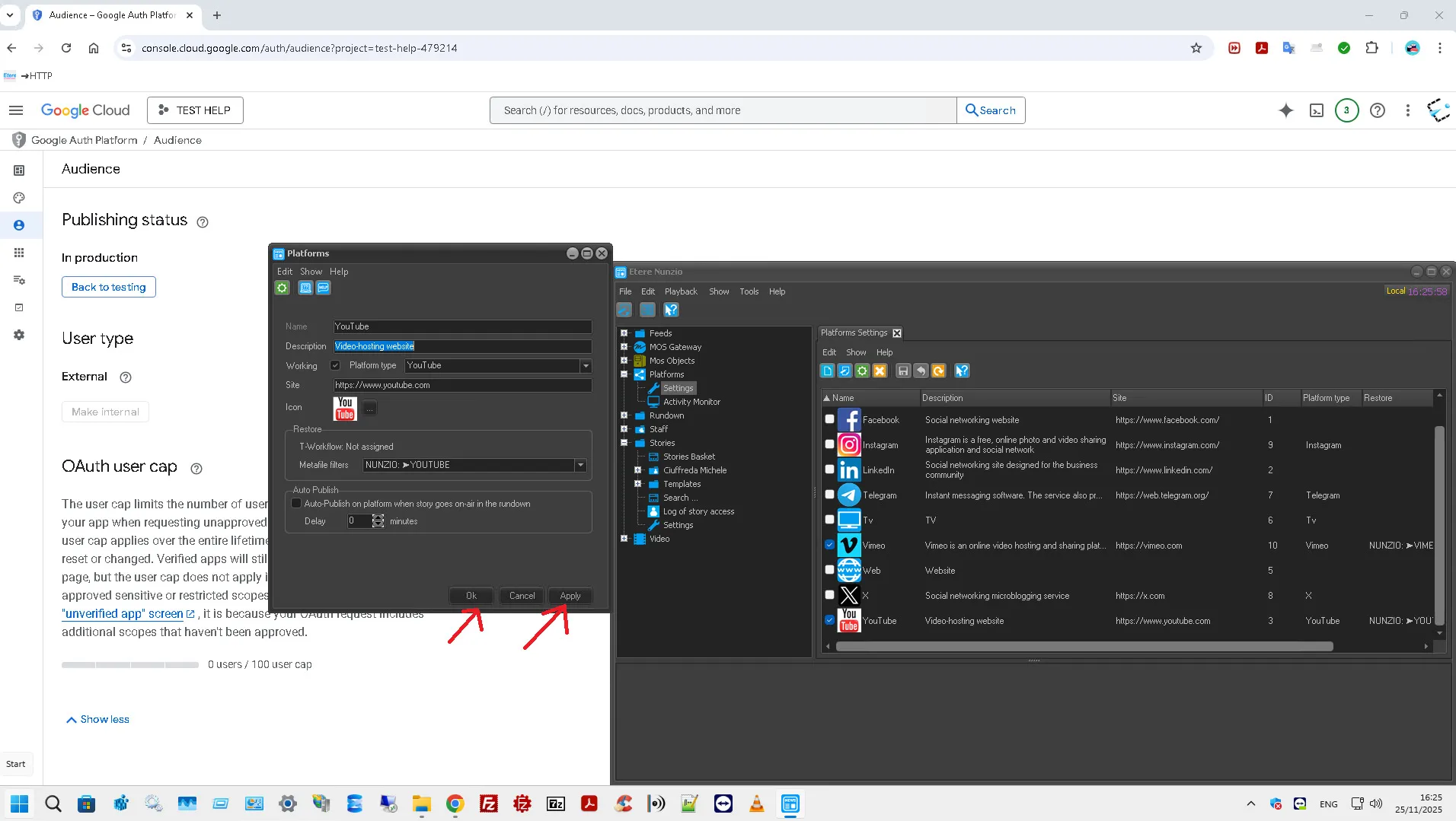 Note: When the configuration of a platform is changed, a restart of the Etere Nunzio application and service social media connector are required, in order to apply the new settings.