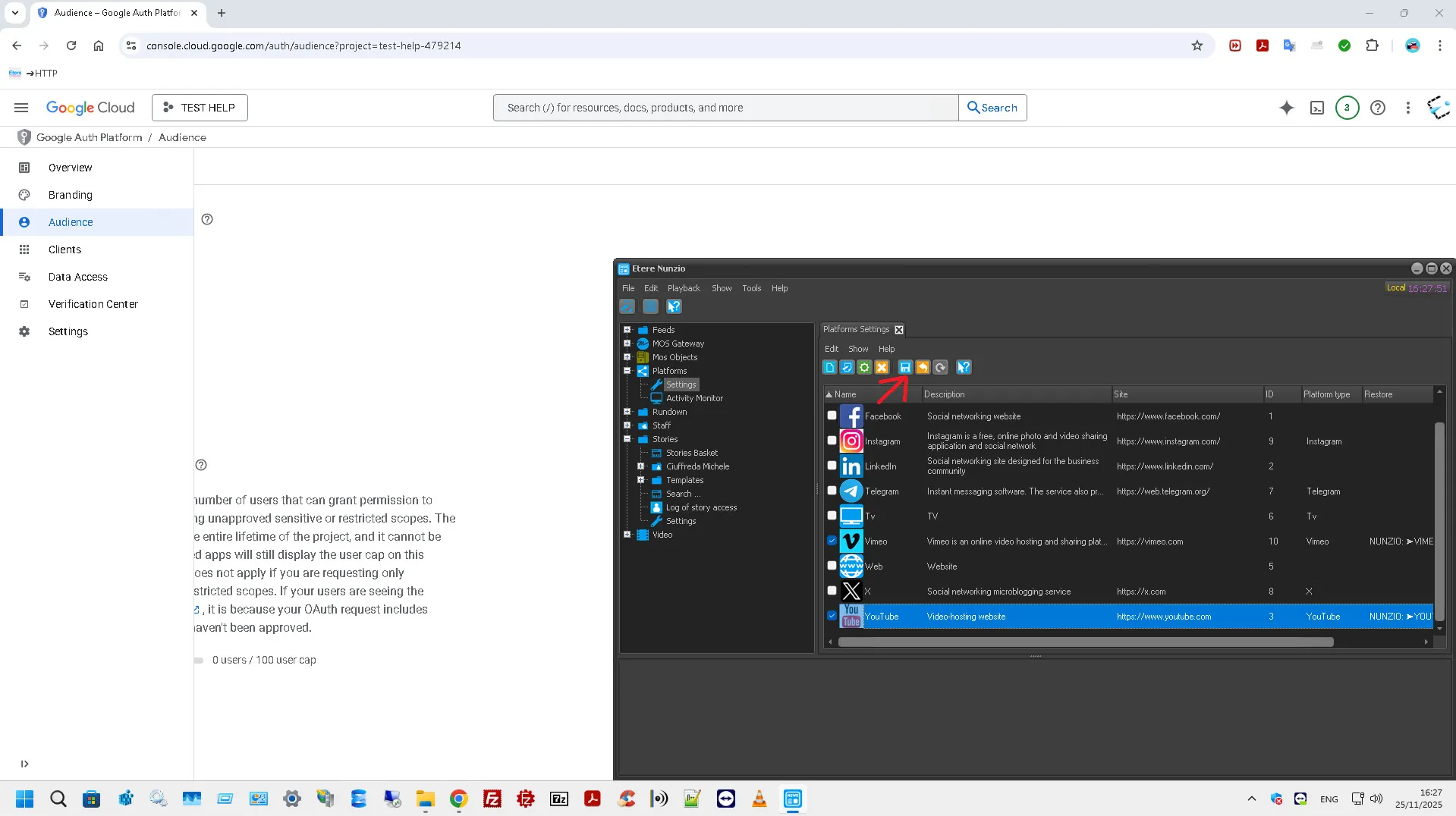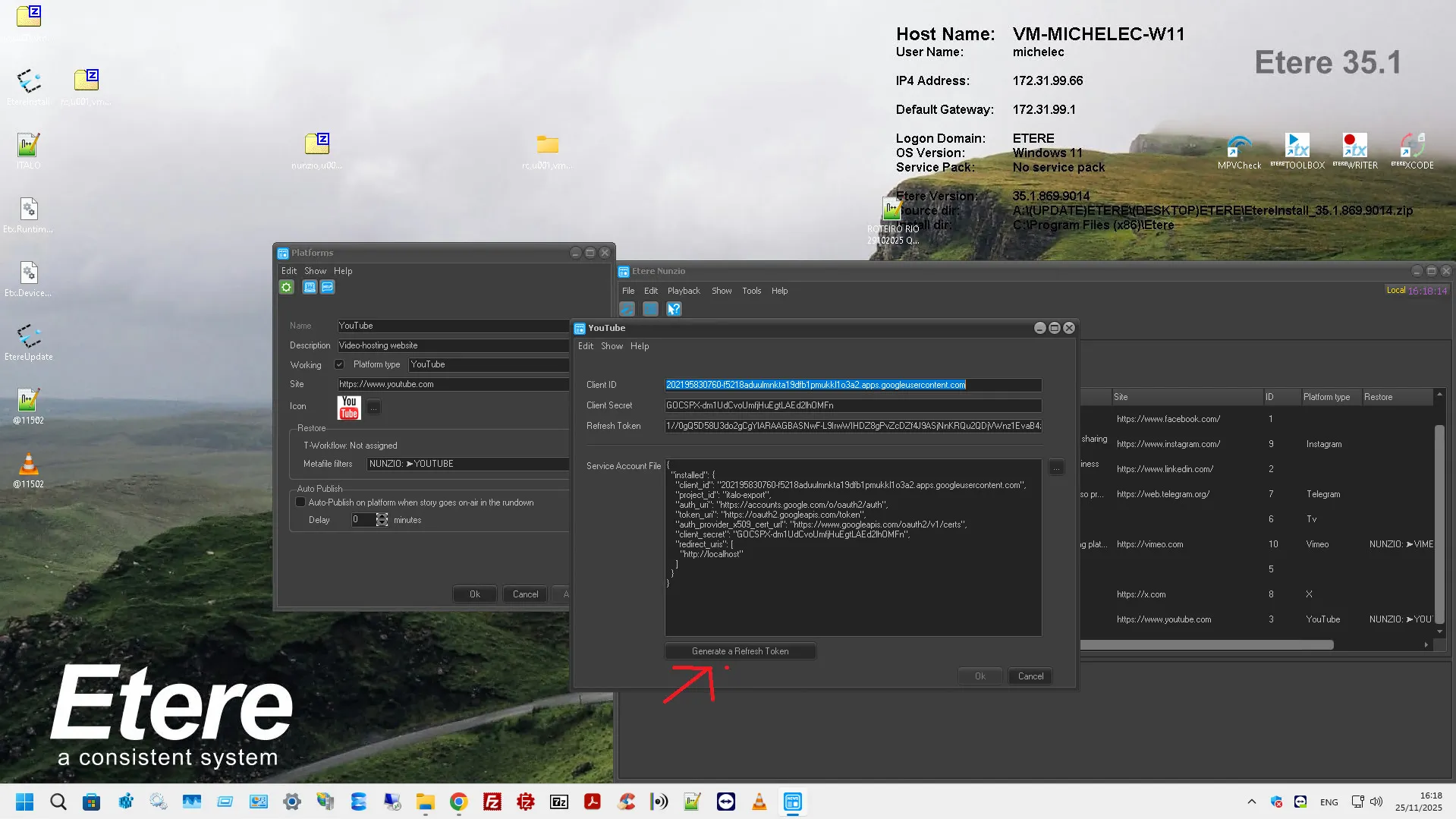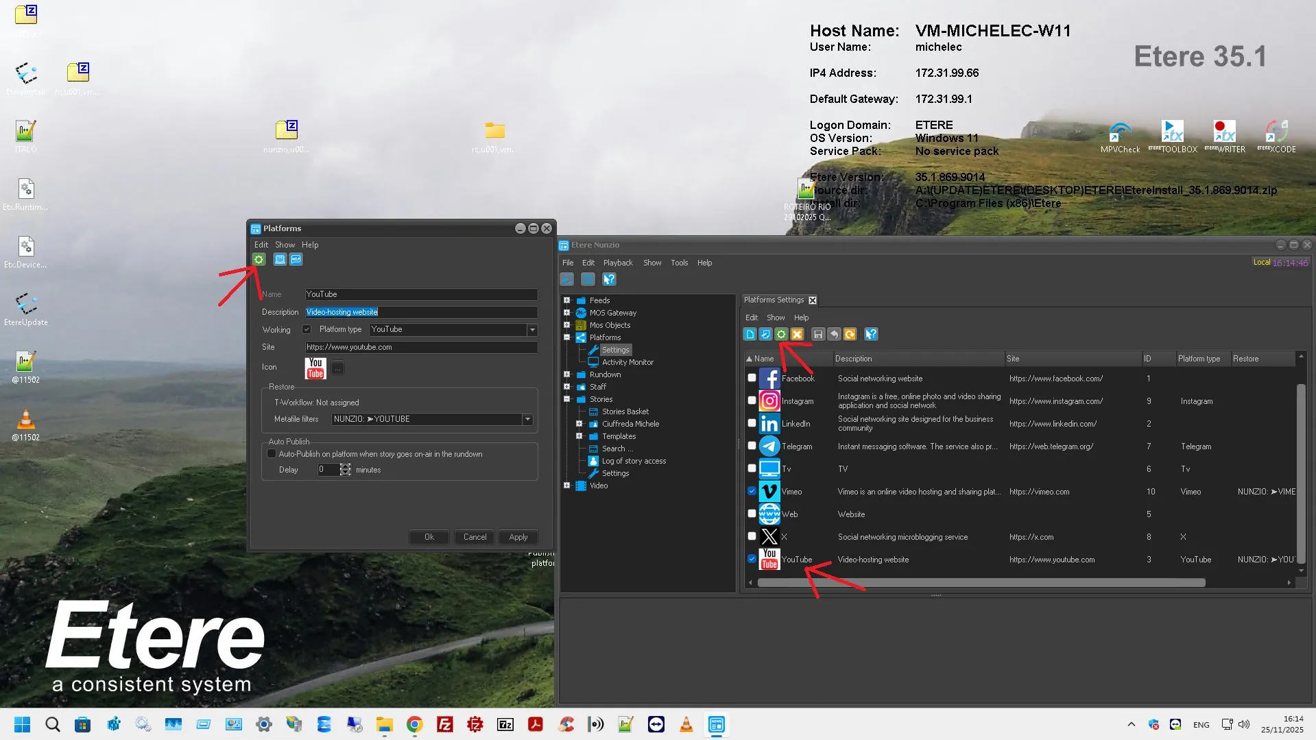 Etere Nunzio can be integrated with different social Media Platform such as: