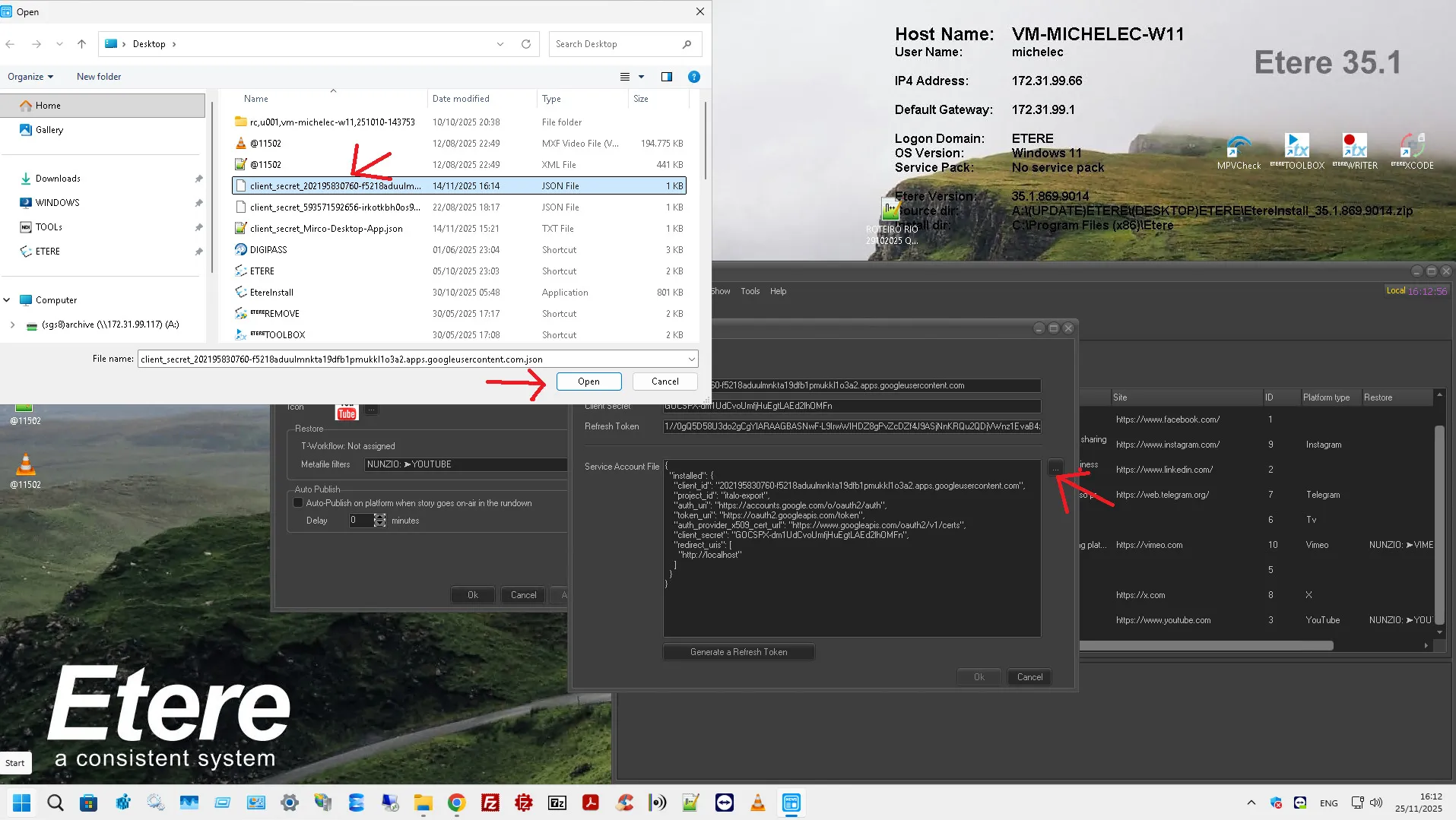 16. Import the file downloaded in step 13 to EtereNunzio\Platform\Settings\Youtube