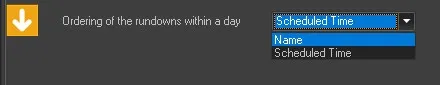 It is also possible to define the ordering rule for rundowns within the same day: Name: Ordering will follow alphabetical order of rundown titles Scheduled time: Ordering will follow scheduled time order rundown_ordering