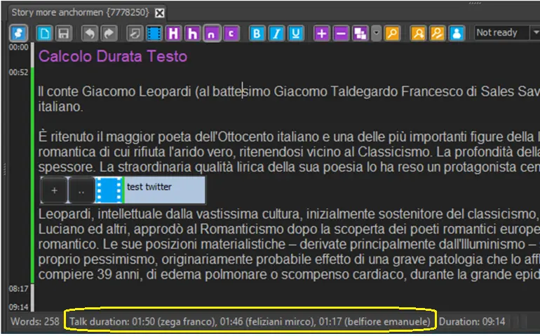 In view of the “Words per minute” settings for different anchorman, the duration of the story is calculated based on the reading speed of the anchorman.