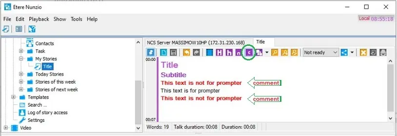 Comment style: Insert comments or additional information to prompter, or paste the comments using Sticky Notes. The comments would be displayed in RED colour which are not required to be read by archorman.