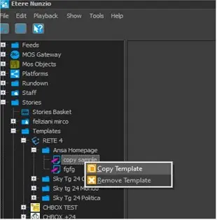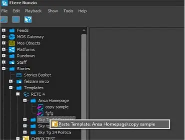 The Templates node contains all story templates available in the station. Templates are grouped by category, e.g. Business, Sport, World, etc.