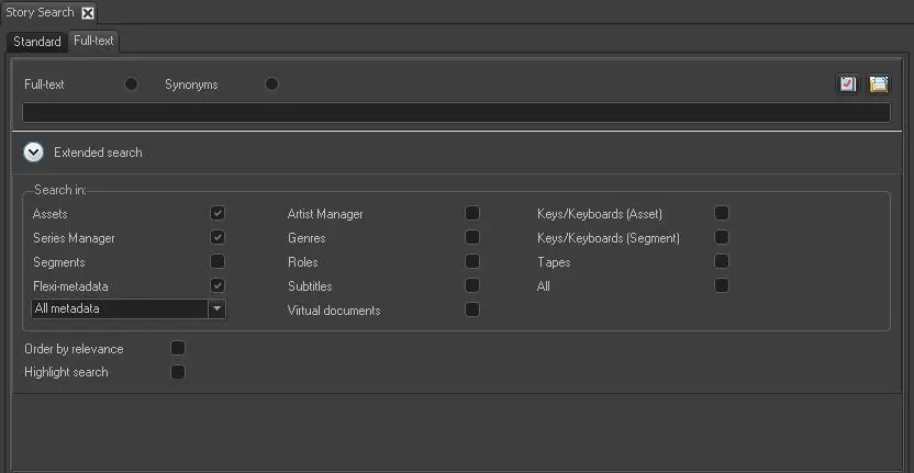 When search for text or word in stories, it does not highlight the specific text or word when it is found. Instead the entire row of the text line would be displayed in blue. If the story text is embedded with special character(s), you can insert a wild card (e.g. *) in the search filter to achieve the desired results.