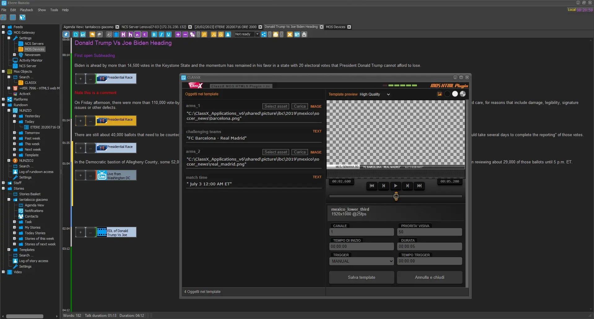 Etere Nunzio can be integrated with ClassX in order to manage any kind of GFX within the Etere Newsroom System.
