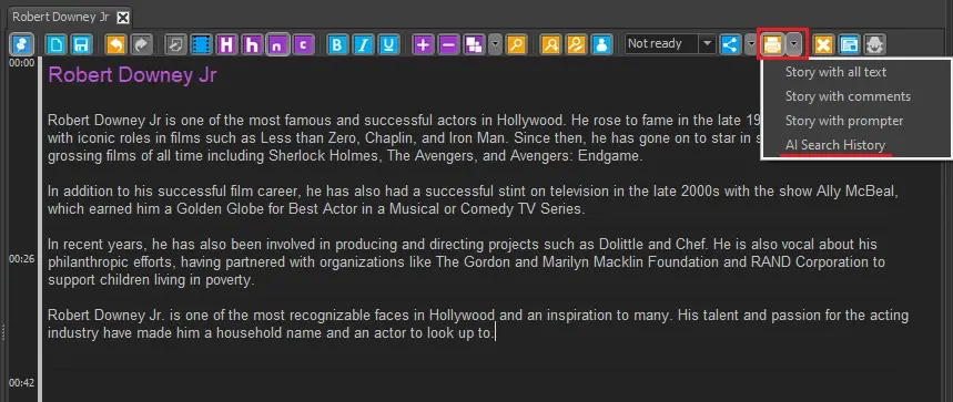 To launch it, just select the option "AI search history" from the Reports button on the story toolbar.