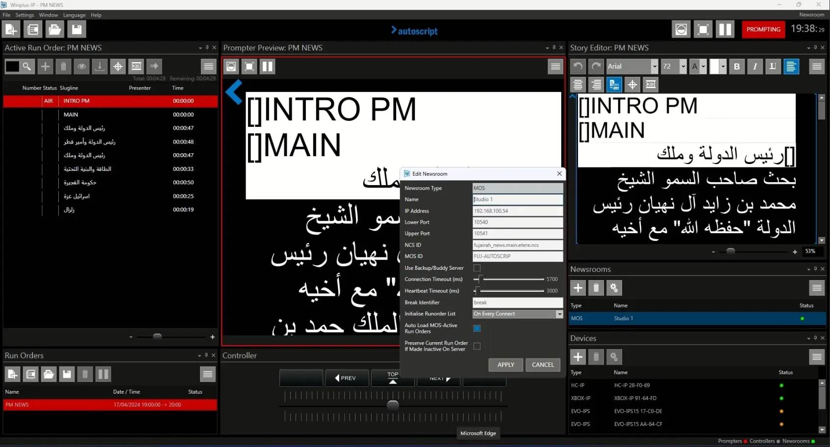 Once the configuration has been done, Nunzio can pass Running Order to Autoscript which will display all the related text info in their devices.