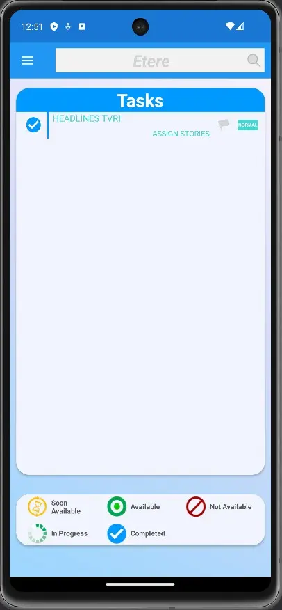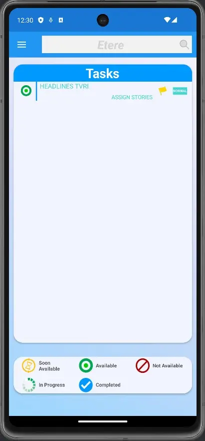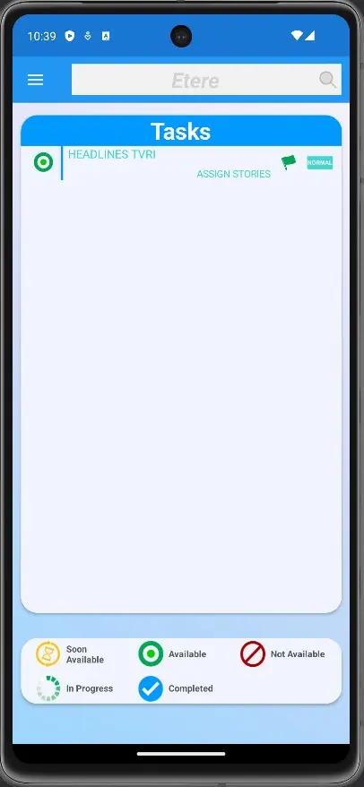 Once we login against the Etere Nunzio App, we will be redirected to the TASKS landing page, so the given user/operator can easily and quickly check any related task he/she may have pending.