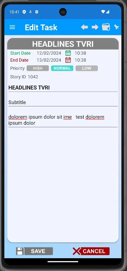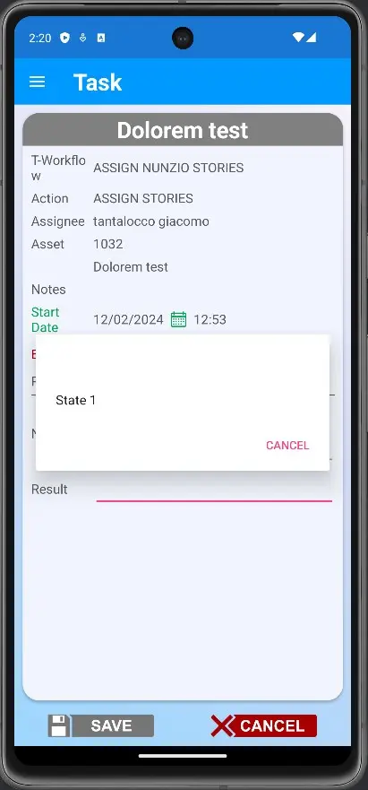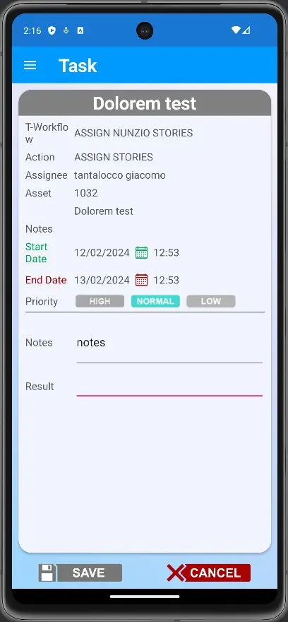 In addition, any TASK can be opened, and depending on its status is possible to EDIT and SAVE it according to the operators needs.