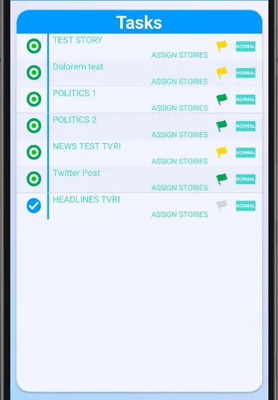 Once TASKS have been released for any user or group in the Newsroom, they would be available, by their state, all along the body of the TASKS page.