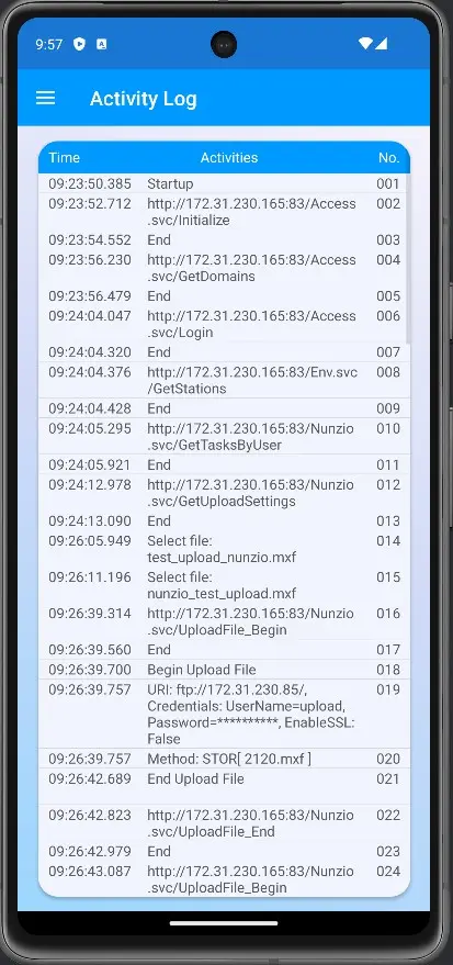 In here, is possible to read all the Activity Logs in order to find out any possible issue generated by the Application or by any external function.