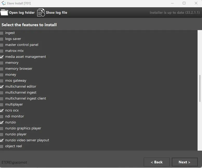 In order to start using Etere Nunzio in such environments, start by performing the Etere Nunzio Video Server Playout installation by running Etere Update module and select the given option.