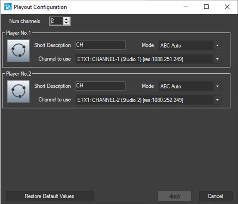CHANNEL CONFIGURATION IN NUNZIO PLAYOUT