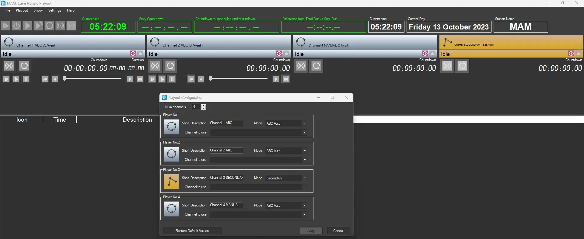 Following all the related configurations available once we run Etere Nunzio Videoserver playout.